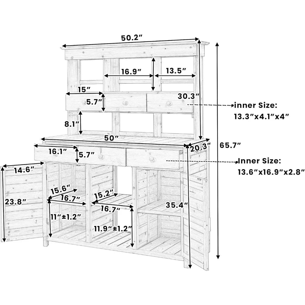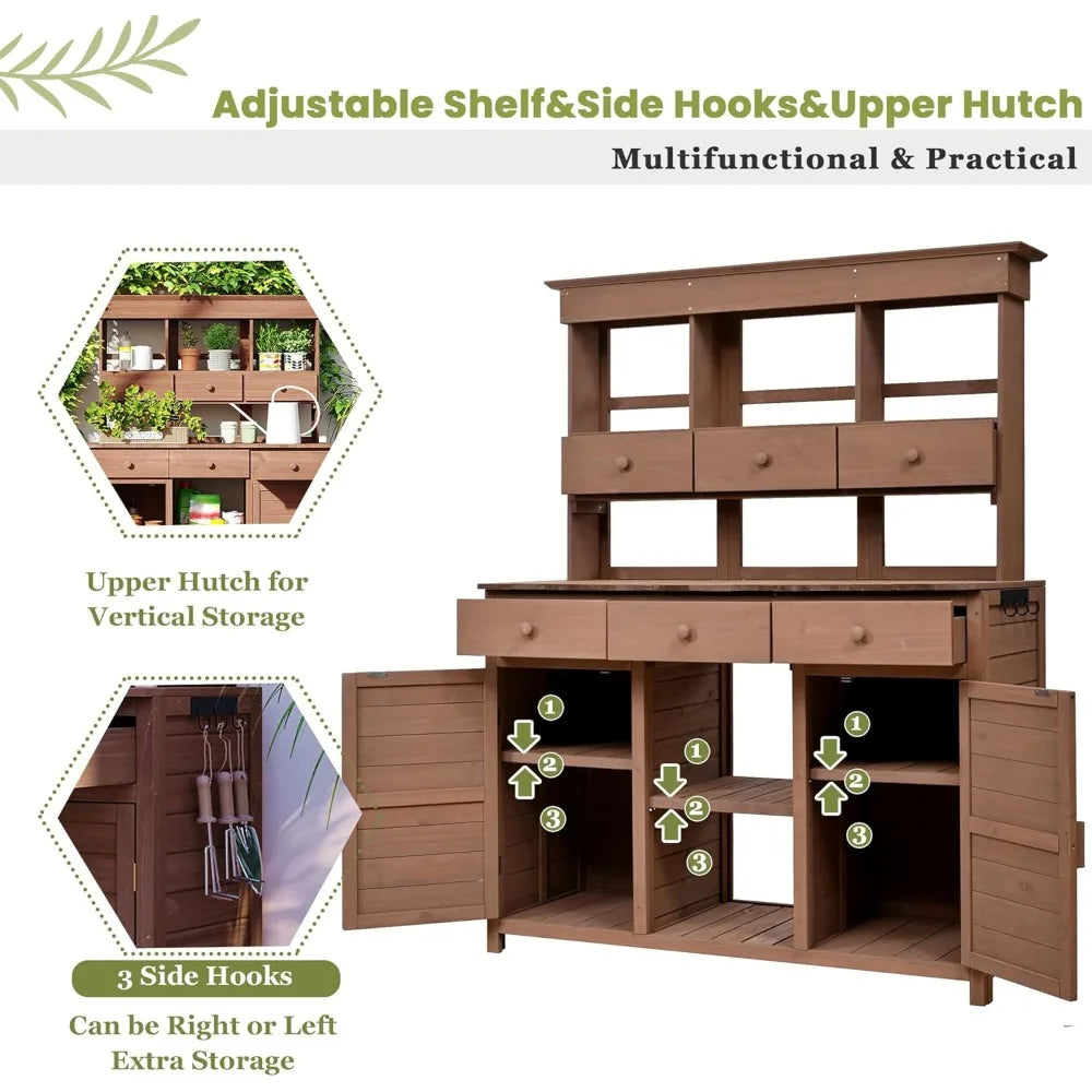 Large Outdoor Potting Table with Storage, Wood Garden Potting Bench, Garden Work Bench, 65 inch Outdoor Potting Bench Table