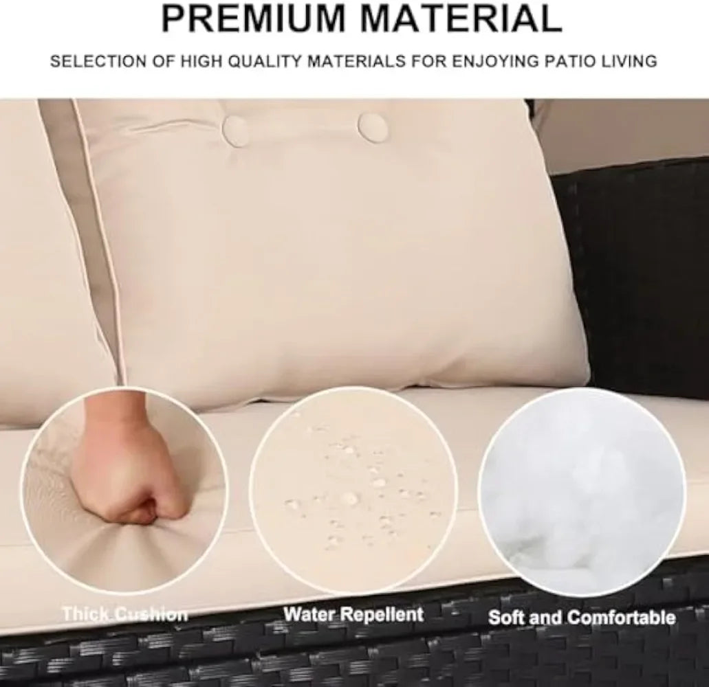 Patio Conversation Set - 3 Piece Patio Sectional Sofa Set, Coffee Table, Black/Beige